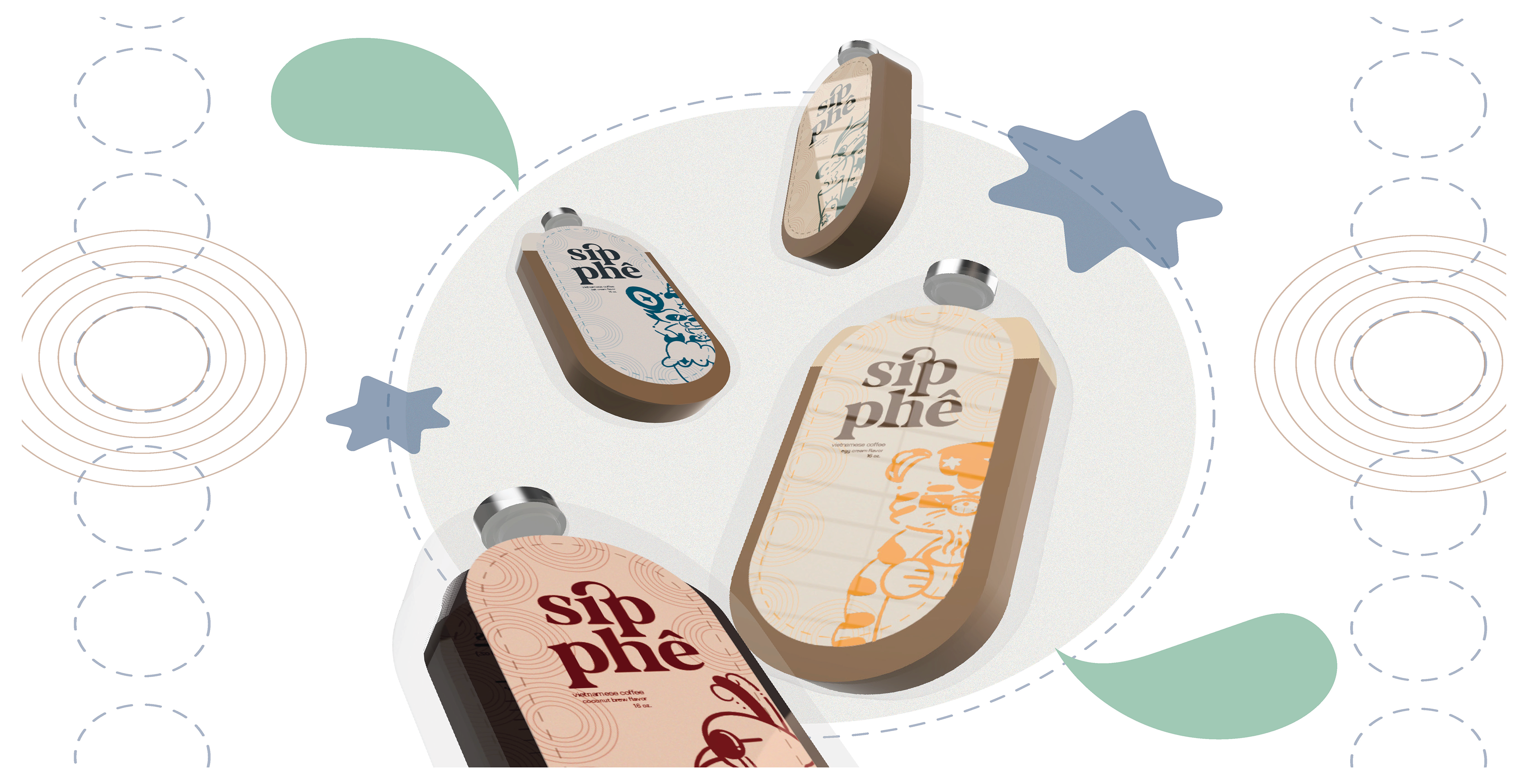 A sip of tradition! Sipphê (combination of the English word "sip" and the Vietnamese word "cà phê" (meaning coffee), is a brand serving pre-brewed Vietnamese coffee where there are unique, traditional flavors that meet the modern aesthetic. This brand has sustainable packaging and fun mascots inspired by cherished folklore.